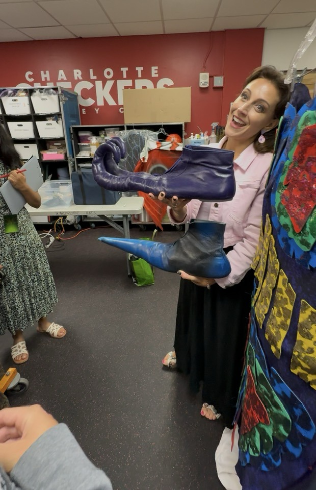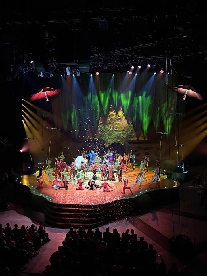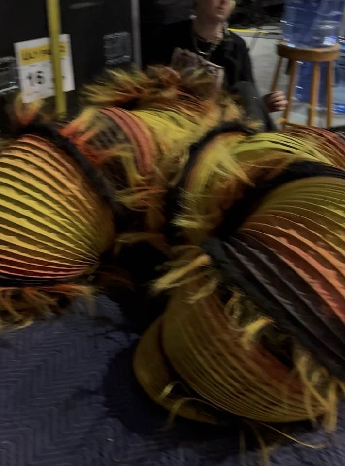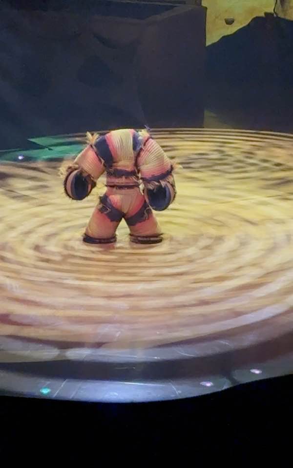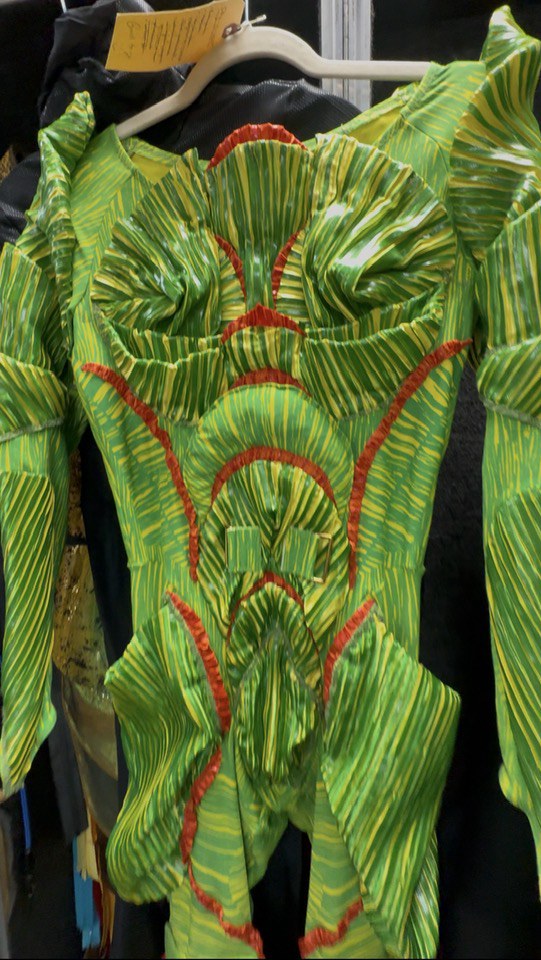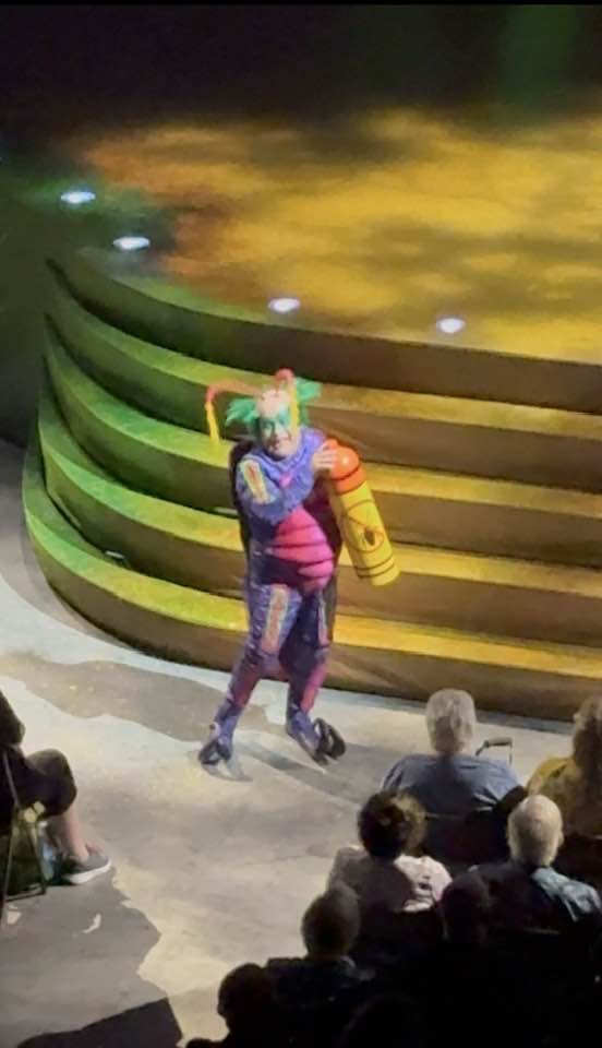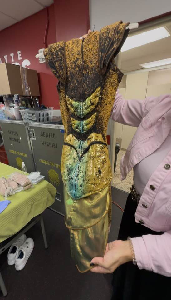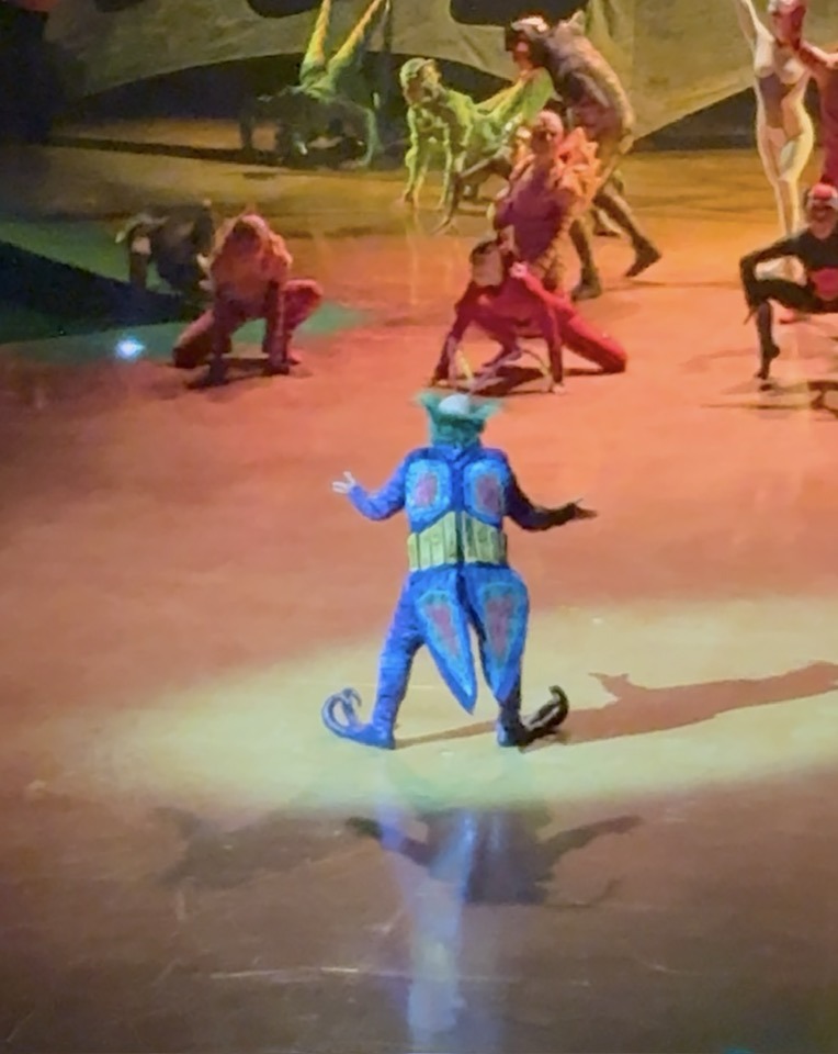 I”m someone who likes to see how the sausage is made, and lovvvvvve a tour of any kind…the more info, the better! So what I’m going to share here is some of the BTS stuff (pictures): what we saw behind the curtain, and how we saw them in the show! For example, it was so incredibly cool to see the wardrobe director tinkering with a costume backstage, and then what the performer did in that costume on the stage! We even got to interview Nathan, who is one of the crickets, and is a trampoline (and high dive) specialist! He gave Lilly so much food for thought, and spoke extremely highly of Cirque du Soleil as a company to work for.