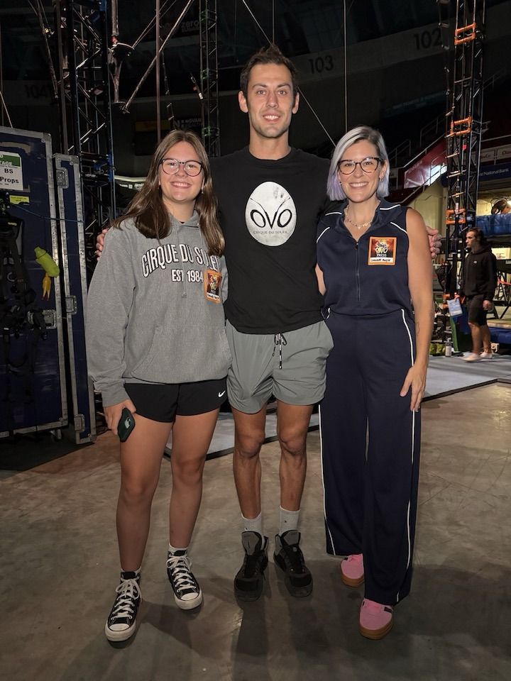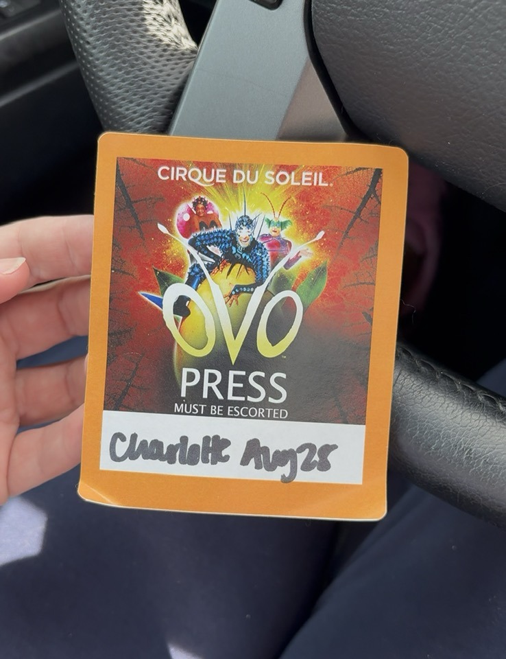 I got major mom points this week when I got Lilly a behind-the-scenes look at Cirque du Soleil’s traveling area show, Ovo! As many of you know, Lilly (my 16-year-old) is an aerial performer, who specializes in silks, and she’s been doing this as her sport, and will hopefully do it for her career. She attended a two-week summer intensive at Ecole Nationale de Cirque in Montreal, which is a national circus school, and is across the street from Cirque du Soleil. She takes lessons locally at Aerial CLT, and has her own 25 foot silks in my hubby’s work warehouse where she can do additional practices. It’s what she eats, breathes, and sleeps, and we’re encouraging her to go as far as she wants with it. She often says, “thanks for being the kind of parents who will let me run off and join the circus!” 🙂